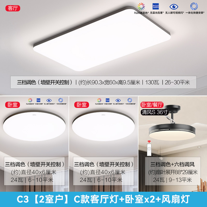 自营 欧普铭宇S吸顶灯TC C3【2室户】C款客厅灯+卧室x2+风扇灯领券无门槛使用,打8.0折,最高减3000元¥1512.00热销中124评价 99.0%好评