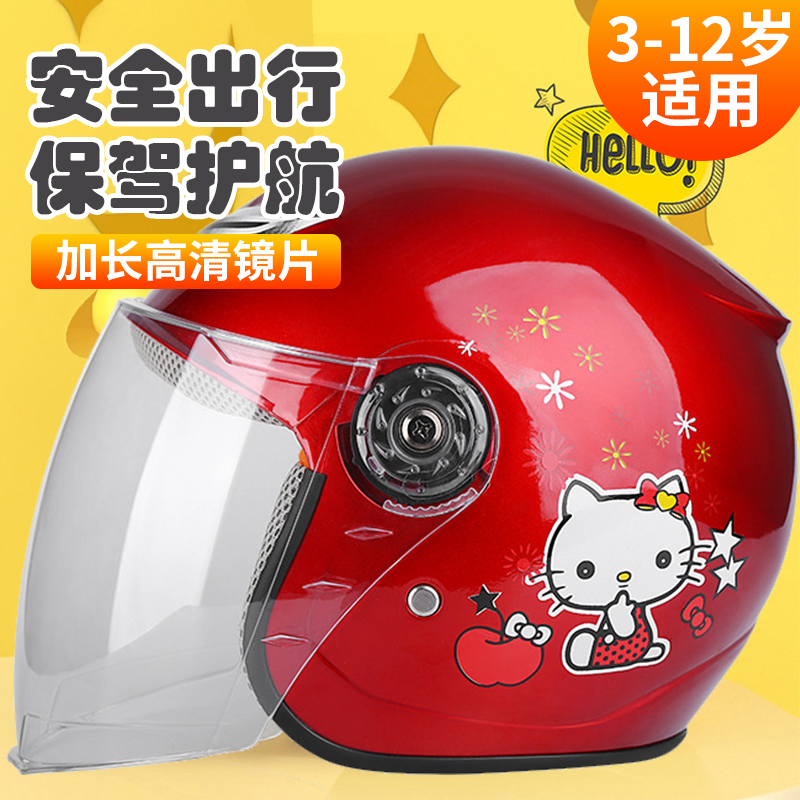 电动电瓶车儿童头盔冬盔冬款加棉保暖电动车安全头盔男女全盔加长挡风镜红色