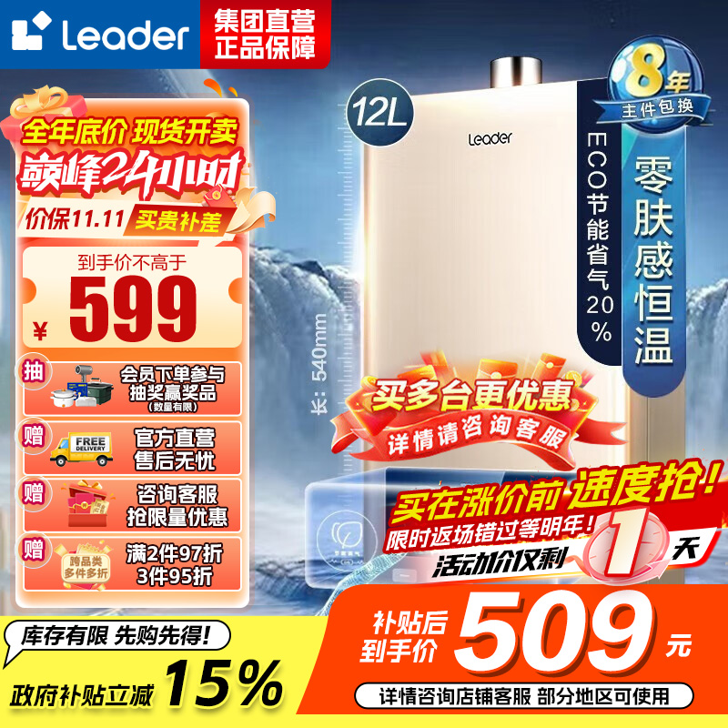 海尔(Haier)出品统帅燃气热水器JSQ22-12LVS(20Y) 液化气版满479元减50元¥619.00热销中717评价 99.0%好评 -