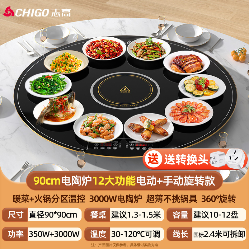 志高饭菜保温板家用热菜圆形餐桌旋转盘多功能火锅暖菜板加热神器 【电磁炉火锅-中号70CM】自动旋转款¥1599.00热销中 -