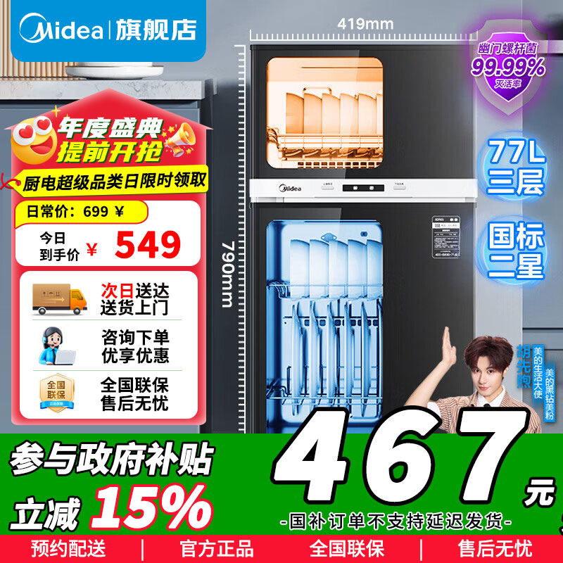美的官方旗舰店消毒柜烘干一体80R05厨房家用立式台式小型碗筷柜¥549.00热销中2724评价 99.0%好评