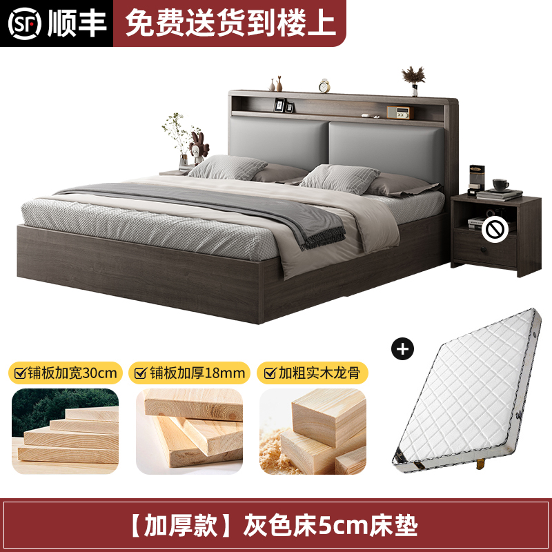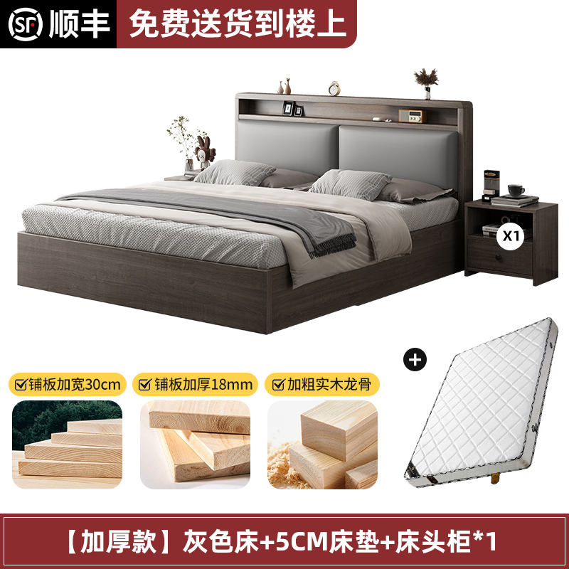 布欧格实木床落地大软包床 单床+5CM床垫+床头柜*1 1.5*2米【自己安装】¥749.00热销中