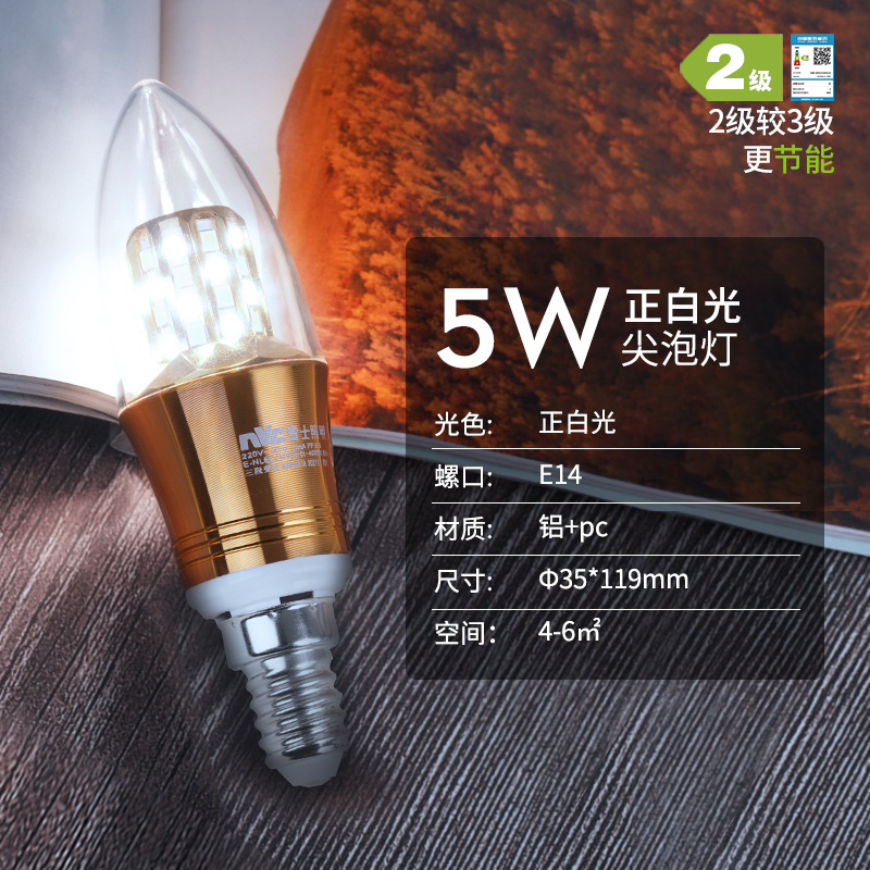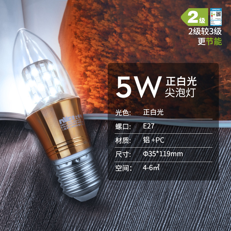 雷士照明(NVC)led灯泡e27e14螺口灯泡家用超亮节能三色变光蜡烛灯泡 5瓦尖泡丨正白光【E27大螺口】 光源满1件打8折¥16.00热销中