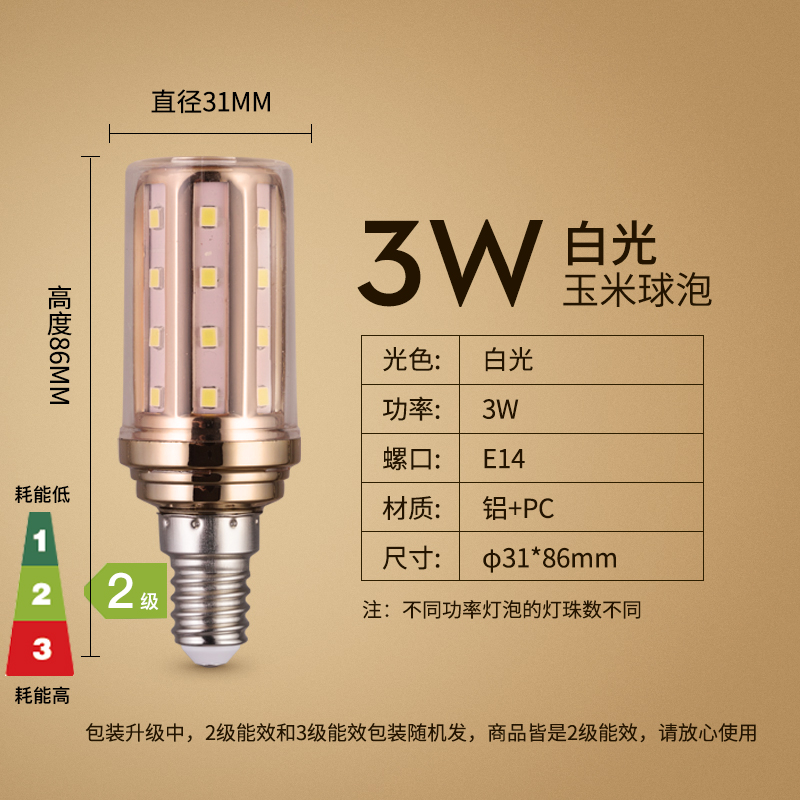 雷士照明(NVC)led灯泡e27e14螺口灯泡家用超亮节能三色变光蜡烛灯泡 光源 3瓦玉米泡丨正白光【E14小螺口】满1件打8折¥15.90热销中8评价 100.0%好评
