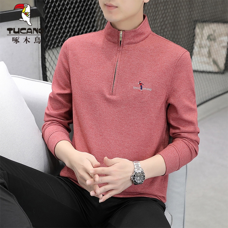 啄木鸟长袖t恤男士2025年春季商务休闲上衣半拉链立领打底衫男款 3XL 2310红色¥313.00热销中