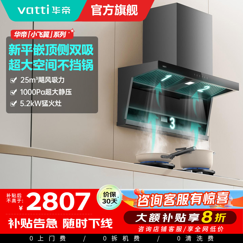 华帝(VATTI)【小飞翼】顶侧双吸 变频24风量 烟灶套餐i11237+i10071B大吸力抽油烟机K7 5.2kw灶领券满100打9.0折,最高减700¥3220.83月销量91785评价 99.0%好评 -