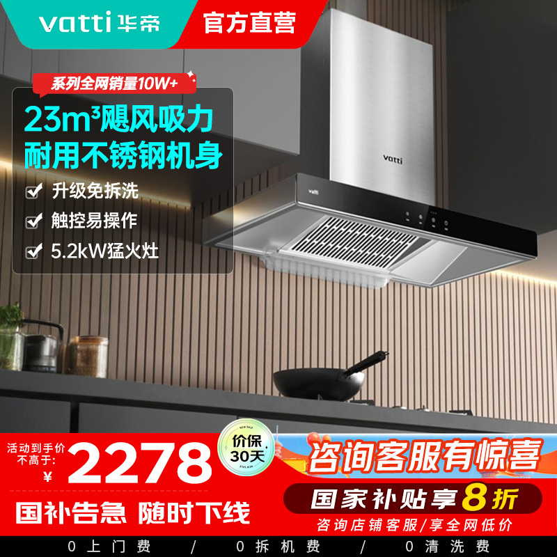 【年度新品】华帝(vatti) 三腔·创世S7+i10071B 24m³大风量 5.0kW烈焰 欧式顶吸烟灶套餐¥3198.00热销中1785评价 99.0%好评 -