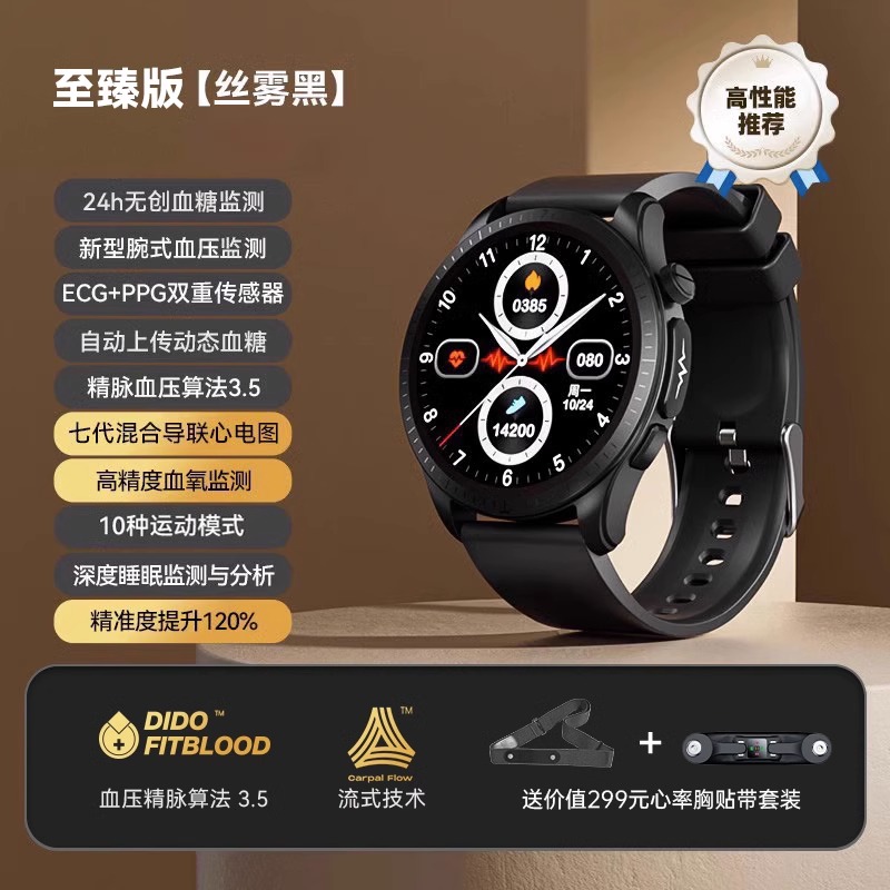 自营 【实时血糖心电】didoE56S无创24小时动态测血糖血压智能手表高精准血氧心率心电运动健康手环老人多功能睡眠 E56S至臻版真皮黑【赠心率胸贴带套装+24h高精准无创血糖¥879.00热销中2评价 100.0%好评 -