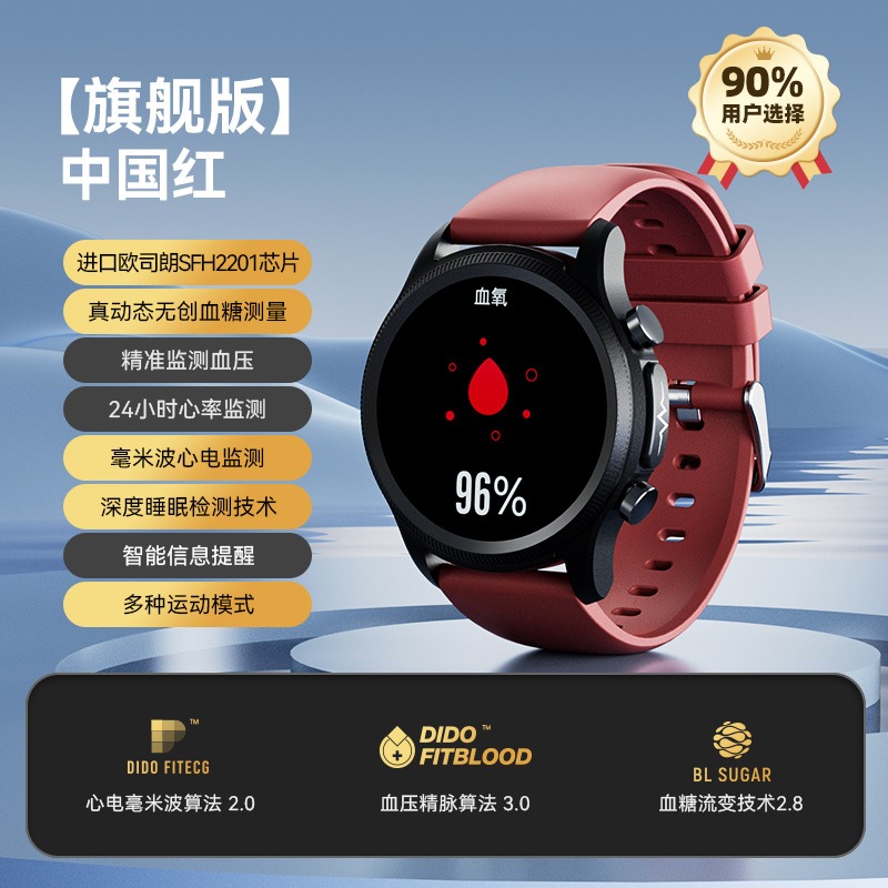 自营 【无创血糖】didoE55S高精准度无创测血糖血氧血压体温智能手表监测量仪心率电图健康老人量心脏心跳运动手环 旗舰版中国红【终身免费血糖测量+自动血压心率血氧+精准度提升¥799.00热销中 -
