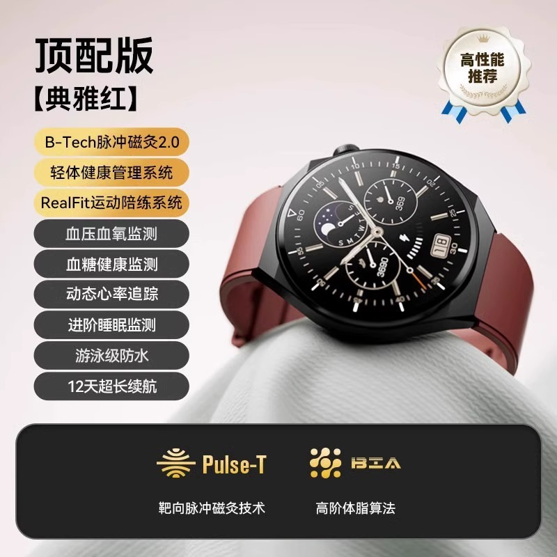 自营 【辅助减肥轻体手表】dido P50 脉冲科学健康辅助减重减脂老人全天高精准测血糖血压心电心率睡眠男女运动健康手环 顶配典雅红【轻体健康管理系统+运动陪练系统+脉冲磁灸2.0+¥1009.00热销中 -