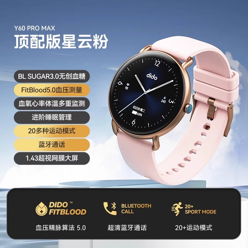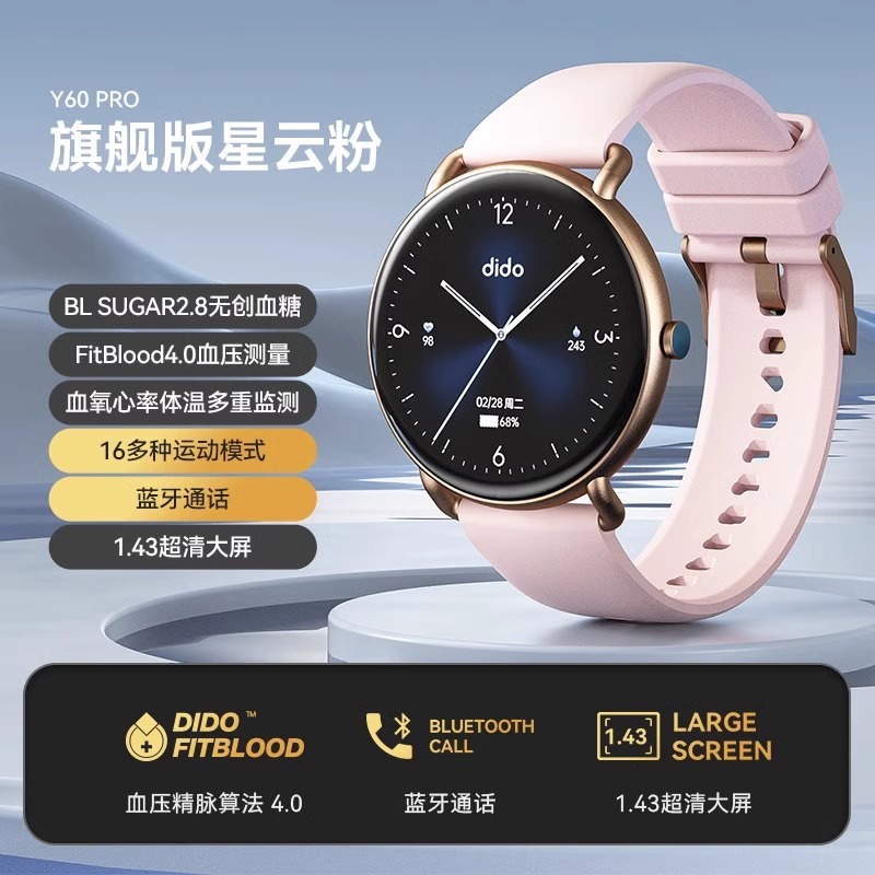 自营 【官方正品】dido智能通话手表GT3血压心率健康可接打电话watch3蓝牙体温睡眠无创血糖监测防水运动跑步男女 旗舰版-星云粉【高清蓝牙通话+血糖血压血氧监测+16种运动模¥479.00热销中 -