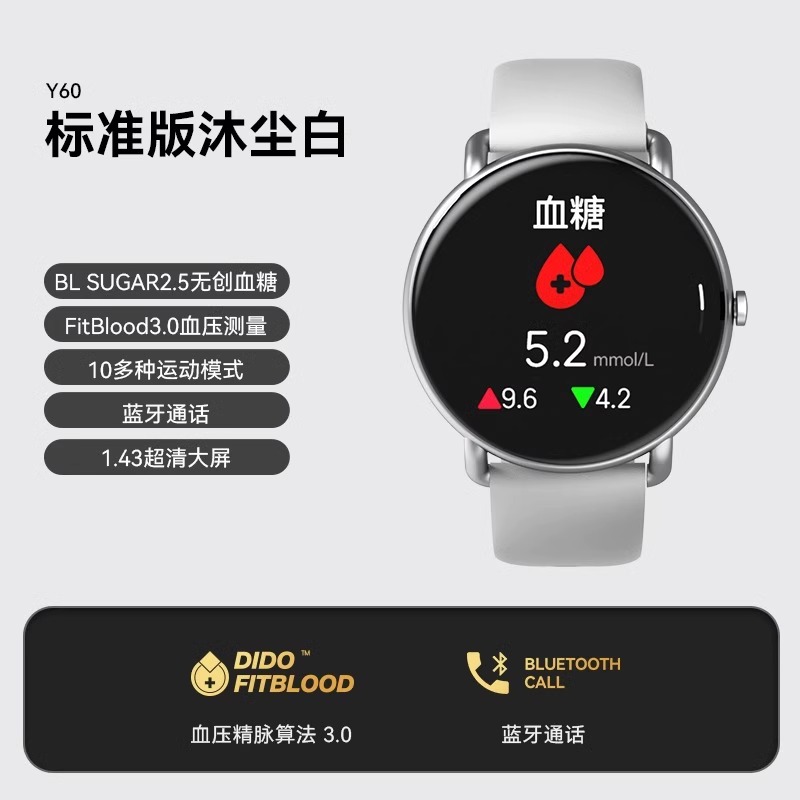 自营 【官方正品】dido智能通话手表GT3血压心率健康可接打电话watch3蓝牙体温睡眠无创血糖监测防水运动跑步男女 标准版-沐尘白【蓝牙通话+血压血糖双监测+10种运动模式】¥379.00热销中 -