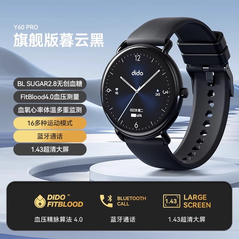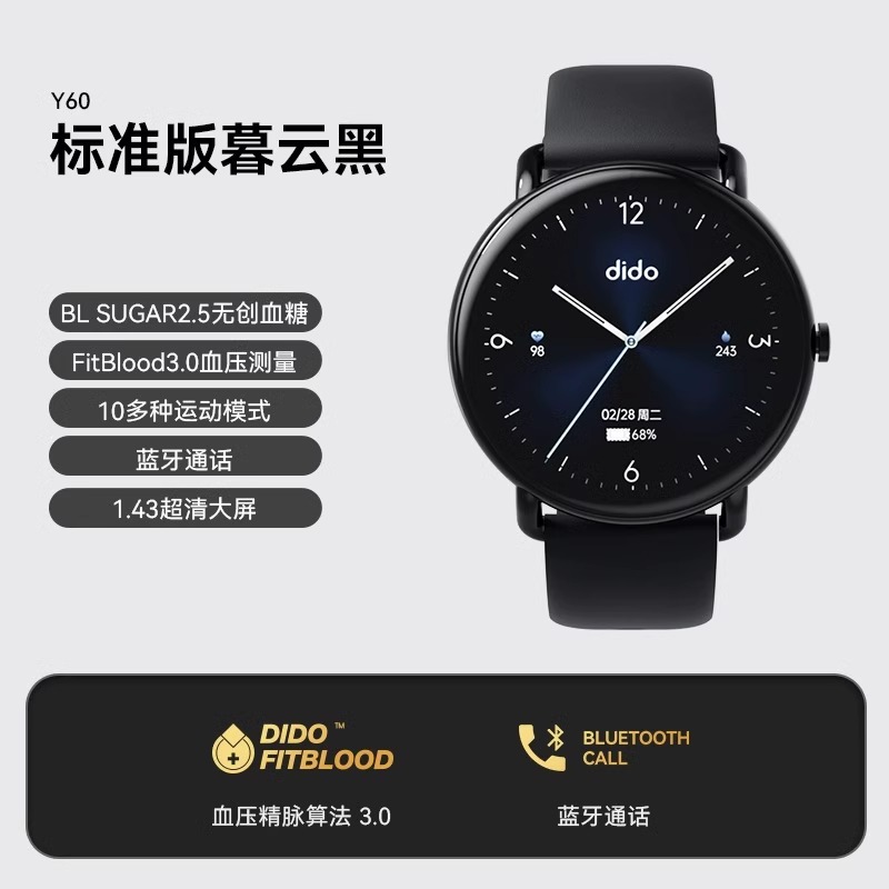 自营 【官方正品】dido智能通话手表GT3血压心率健康可接打电话watch3蓝牙体温睡眠无创血糖监测防水运动跑步男女 标准版-暮云黑【蓝牙通话+血压血糖双监测+10种运动模式】¥379.00热销中 -
