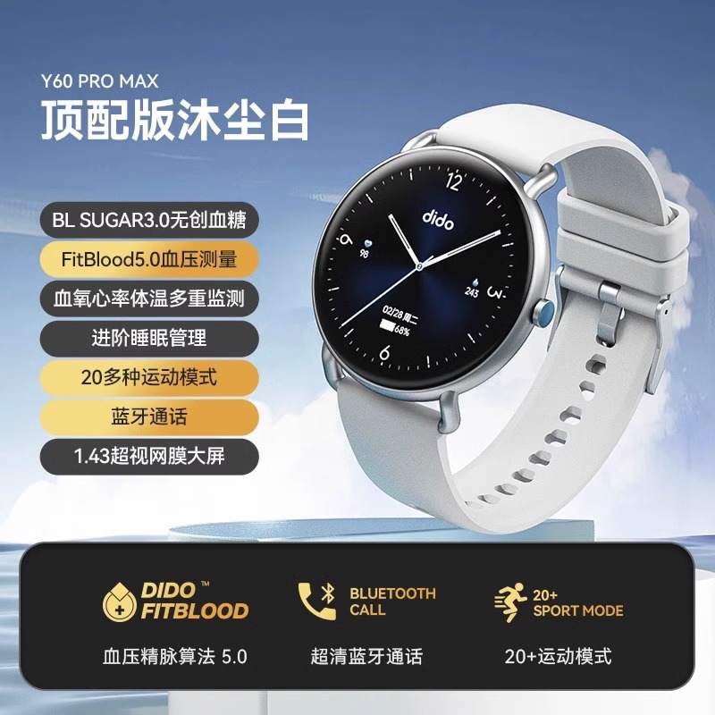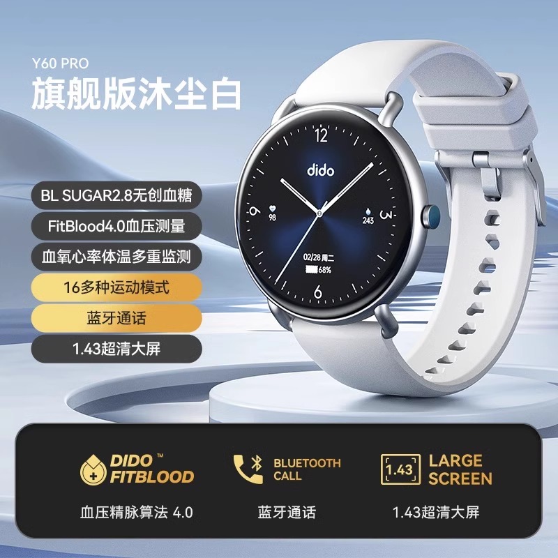 自营 【官方正品】dido智能通话手表GT3血压心率健康可接打电话watch3蓝牙体温睡眠无创血糖监测防水运动跑步男女 旗舰版-沐尘白【高清蓝牙通话+血糖血压血氧监测+16种运动模¥479.00热销中 -