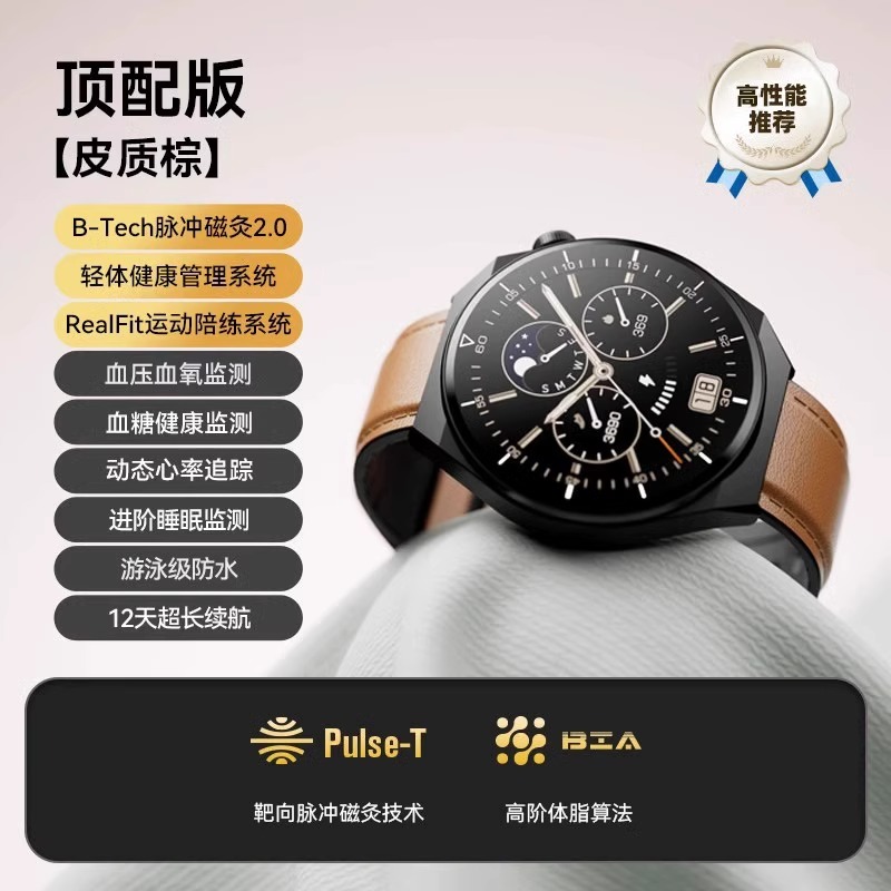 自营 【辅助减肥轻体手表】dido P50 脉冲科学健康辅助减重减脂老人全天高精准测血糖血压心电心率睡眠男女运动健康手环 顶配皮质棕【轻体健康管理系统+运动陪练系统+脉冲磁灸2.0+¥1009.00热销中 -