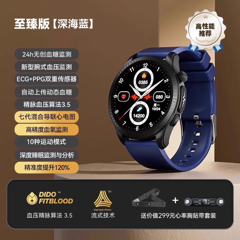 自营 dido F50 高精度血糖无创血压血氧手环智能免扎针24小时动态心率高清健康体温手表运动睡眠跑步测量仪心电老人男女 升级深海蓝【自动血糖监测+血压心电监测+智能低氧提醒+体温监¥499.00热销中 -