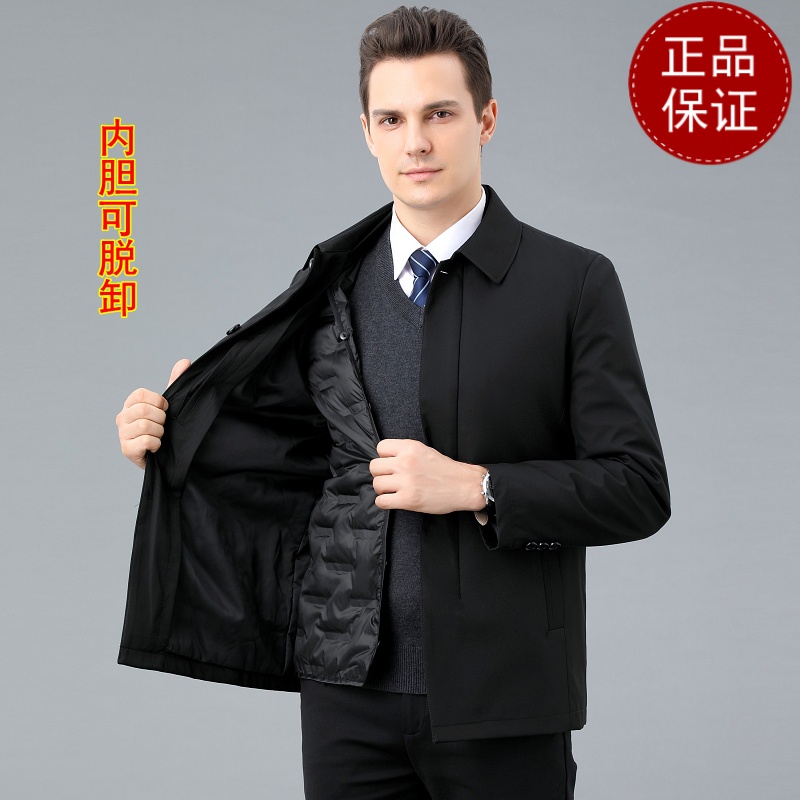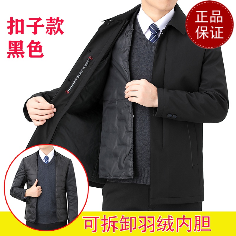 【可拆卸内胆】冬季活里活面羽绒服男士中老年加厚夹克外套大码爸爸装翻领2021春秋冬装新款可_956 170码 黑色【扣子款】可拆卸内胆满3件打9.8折¥599.00热销中