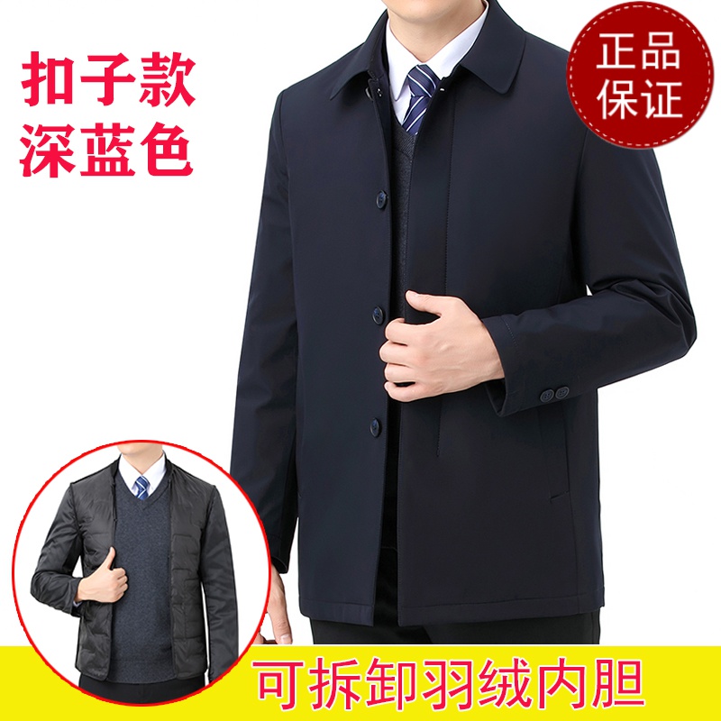 【可拆卸内胆】冬季活里活面羽绒服男士中老年加厚夹克外套大码爸爸装翻领2021春秋冬装新款可_956 180码 深蓝【扣子款】可拆卸内胆¥599.00热销中1评价 100.0%好评