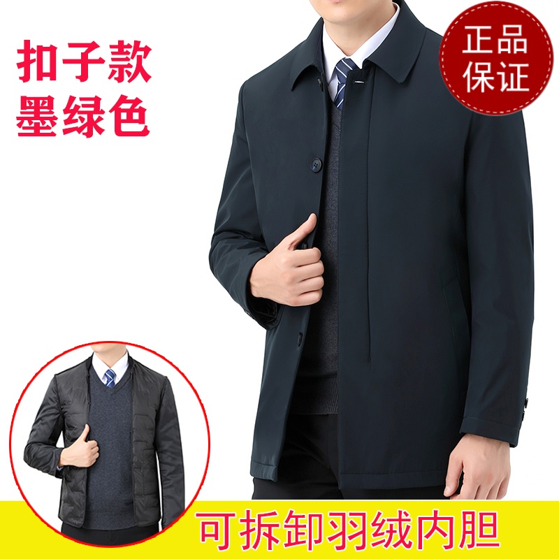 【可拆卸内胆】冬季活里活面羽绒服男士中老年加厚夹克外套大码爸爸装翻领2021春秋冬装新款可_956 195码 墨绿【扣子款】可拆卸内胆满3件打9.8折¥599.00热销中