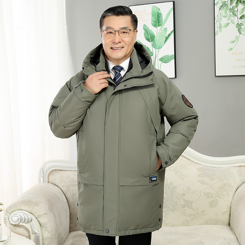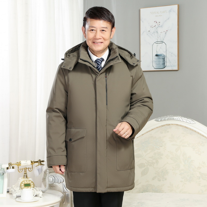 JPDUN中老年羽绒服男活里活面中长款加厚爸爸装_306 XXL 卡其无毛领¥338.00热销中