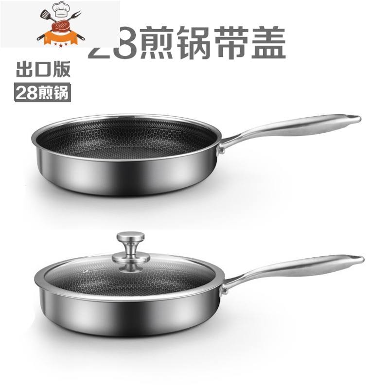 德国316不锈钢平底锅不粘锅煎锅小炒菜锅家用烙饼锅煎鸡蛋牛排锅 FENGHOU 316不锈钢26CM煎锅(玻璃盖)¥320.40热销中 -