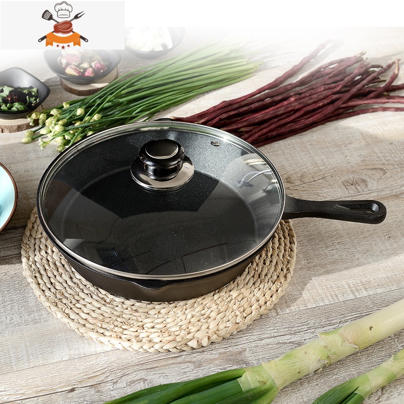敬平铸铁小平底锅迷你煎蛋锅无油烟生铁物理不粘锅烙饼锅小炒锅电磁铁 26cm直径+配套玻璃盖¥87.66热销中 -