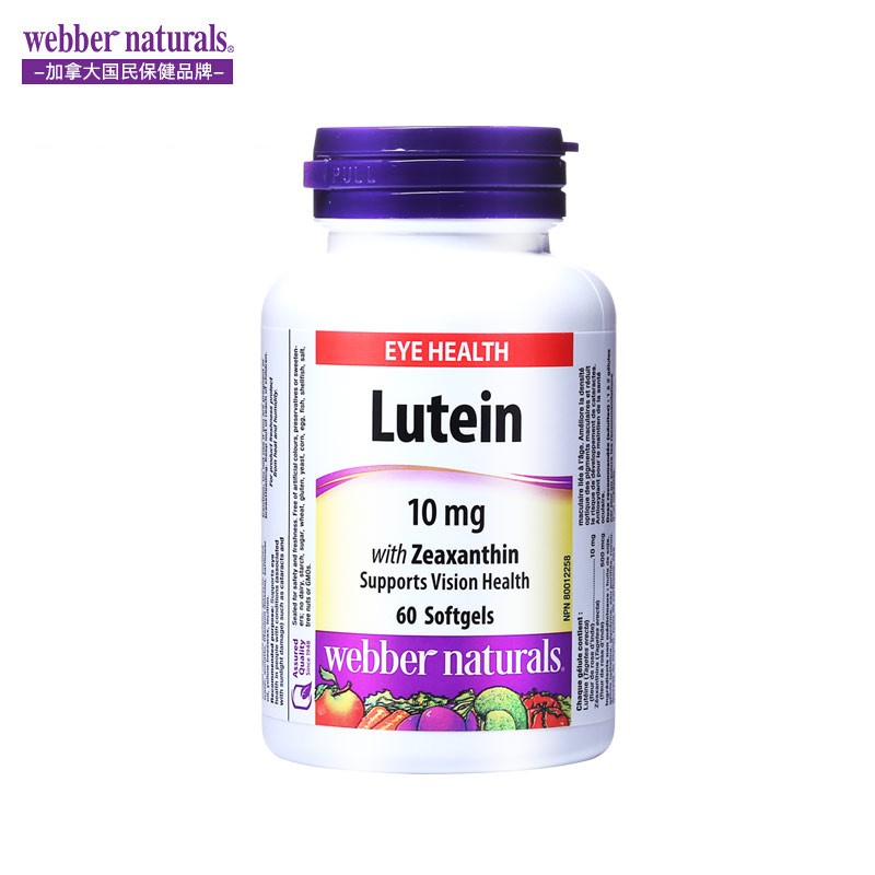 伟博天然Webber Naturals叶黄素10mg与玉米黄素500mcg软胶囊 60粒