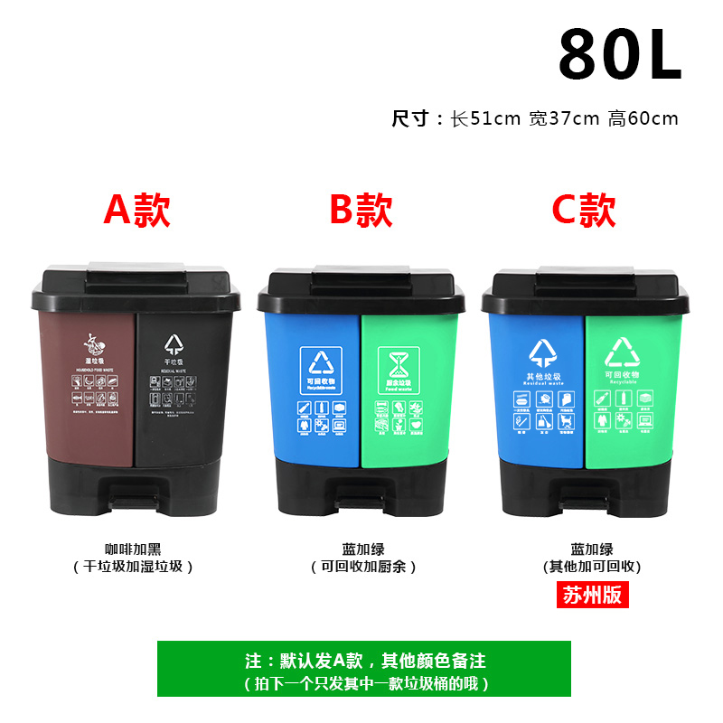 自营 DXBG双桶垃圾分类垃圾桶带盖大号干湿家用脚踏商用餐厅公共场合可回收 80L双桶(备注颜色默认绿和灰)¥327.00热销中1评价 100.0%好评