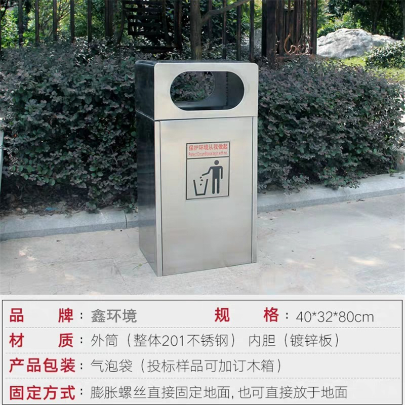 自营 鑫环境 户外垃圾桶物业垃圾桶市政垃圾桶大号不锈钢环卫果皮箱小区公园室外分类双桶垃圾箱 201不锈钢材质单桶¥599.00热销中