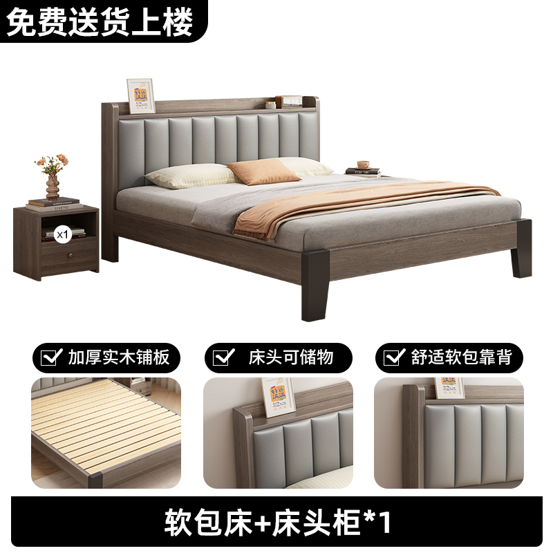 布欧格实木床1米8双人床 1.8*2米【自己安装】 实木床+5CM床垫+床头柜*1¥819.00热销中 -