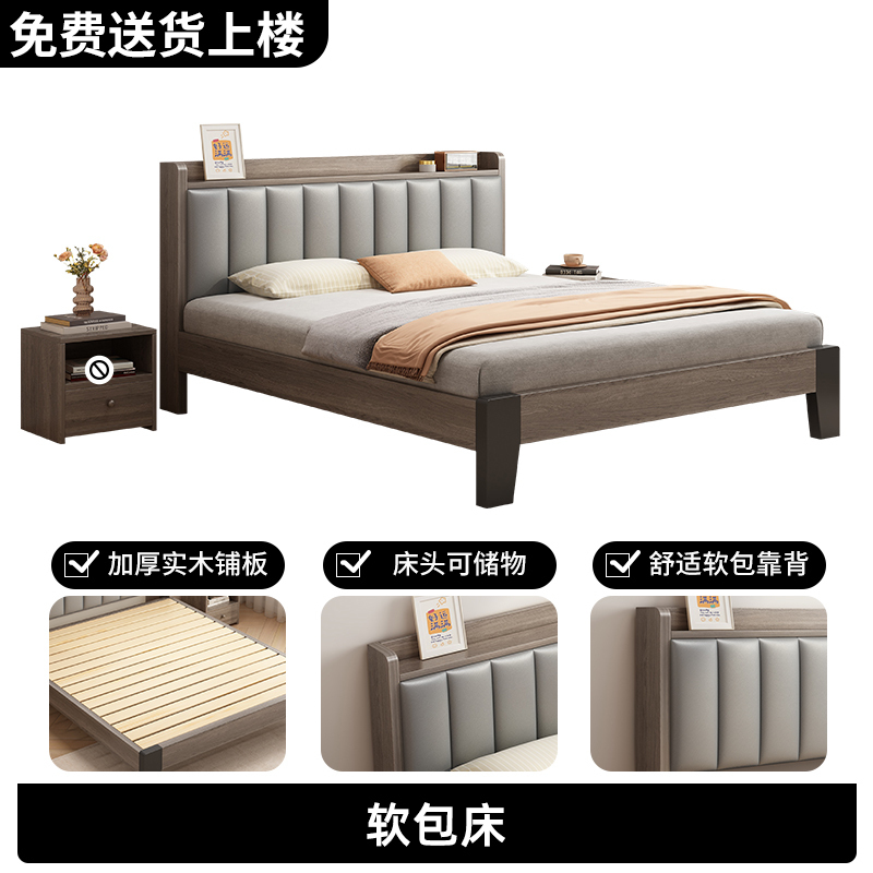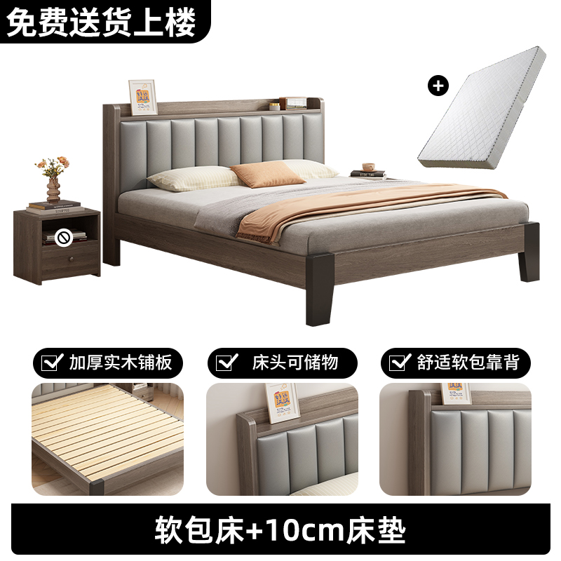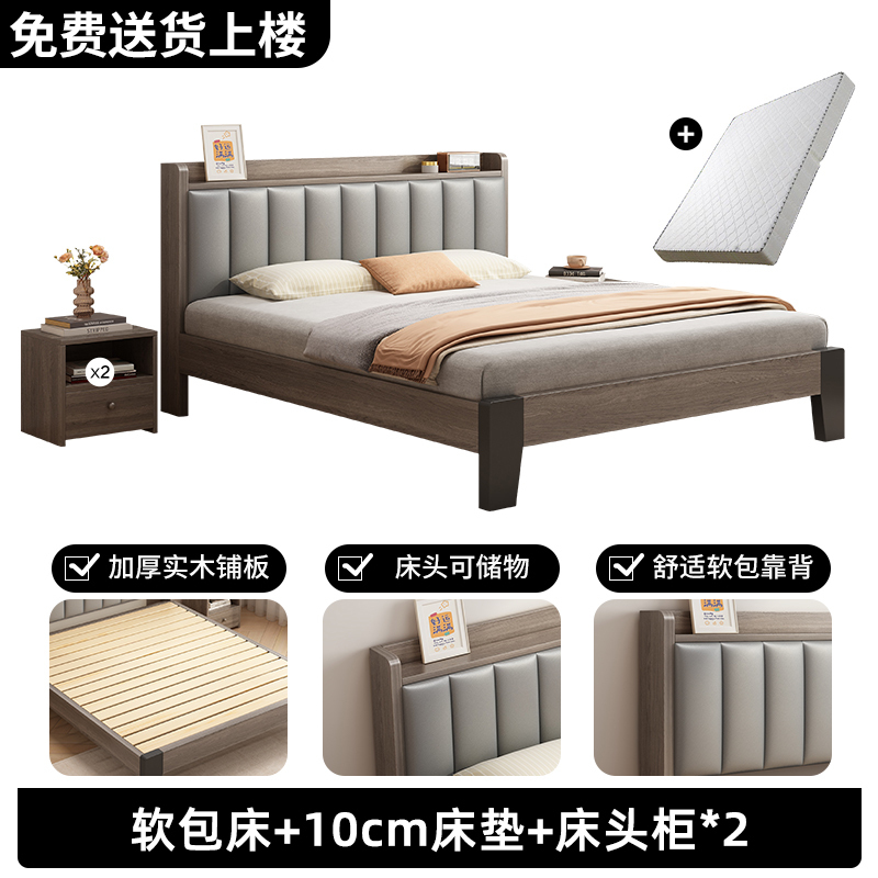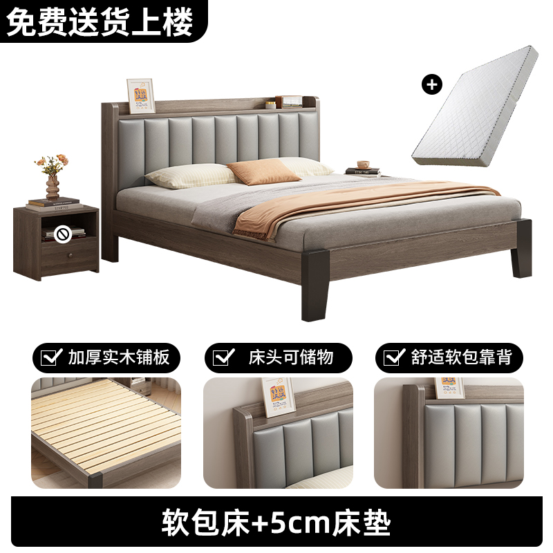布欧格实木床1米8双人床 实木床+5CM床垫+床头柜*1 1.5*2米【自己安装】¥749.00热销中 -