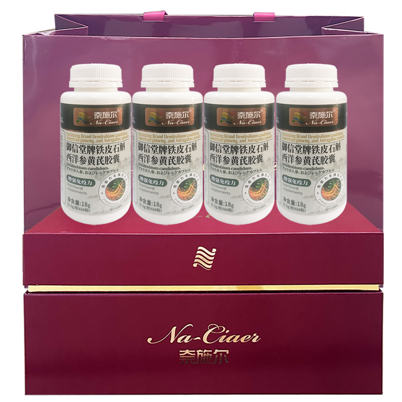 奈施尔西洋参铁皮石斛黄芪胶囊60粒*4瓶礼盒装高山霍山铁皮枫斗粉颗粒¥498.00热销中 -