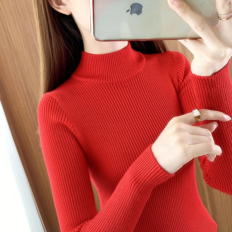 黑色打底衫女秋冬新款半高领毛衣内搭短款修身紧身中领针织衫上衣 红色 XL¥50.80热销中 -