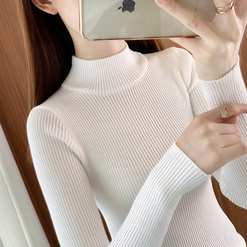 黑色打底衫女秋冬新款半高领毛衣内搭短款修身紧身中领针织衫上衣 白色 L¥50.80热销中 -