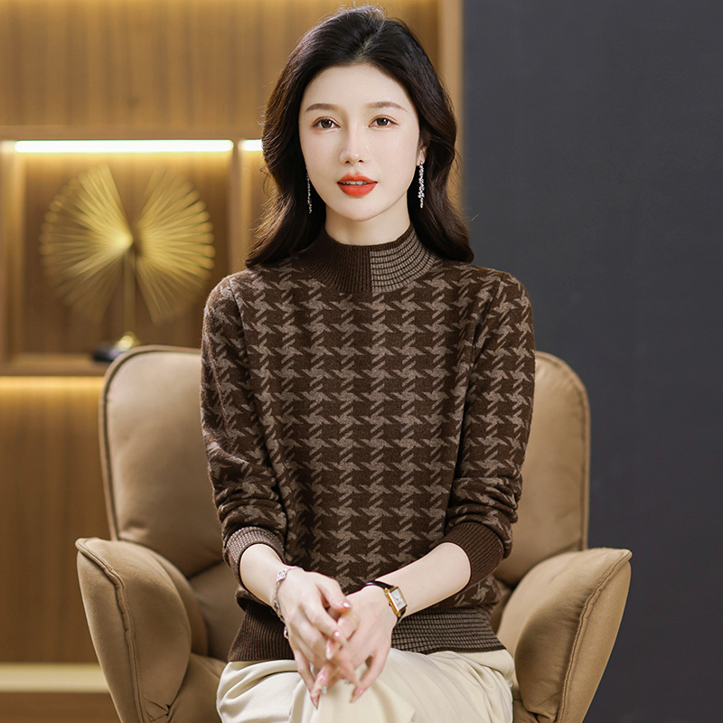 2024春秋新款半高领双股羊绒衫女半高领100%纯山羊绒毛衣印花针织衫宽松慵懒毛衣套头女装上衣针织打底衫加厚外搭毛衣女 8117咖色 XL¥298.00热销中 -