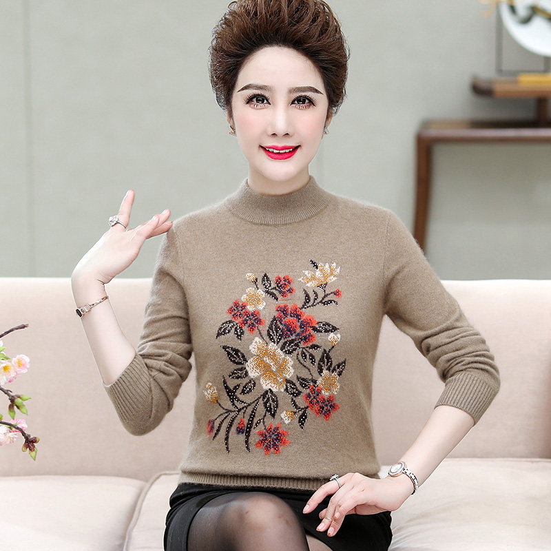 正品EERDS羊绒衫毛衣女妈妈装洋气打底衫上衣中年女士毛衣老年人冬季羊绒衫半高领中老年貂绒毛衣女打底衫加肥加大码女装 889貂绒驼色款 M¥2398.00热销中 -