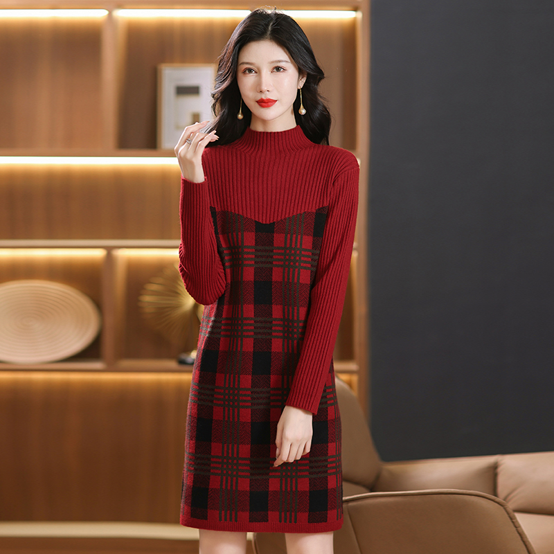 山羊绒衫女中长款高端新款春秋毛衣裙厚打底针织羊毛连衣裙女士半高领套头毛衣宽松连衣裙毛衣大码毛衫针织打底衫 8806红色 L¥298.00热销中 -
