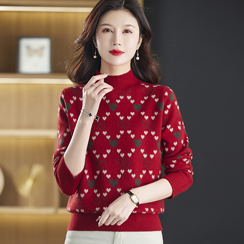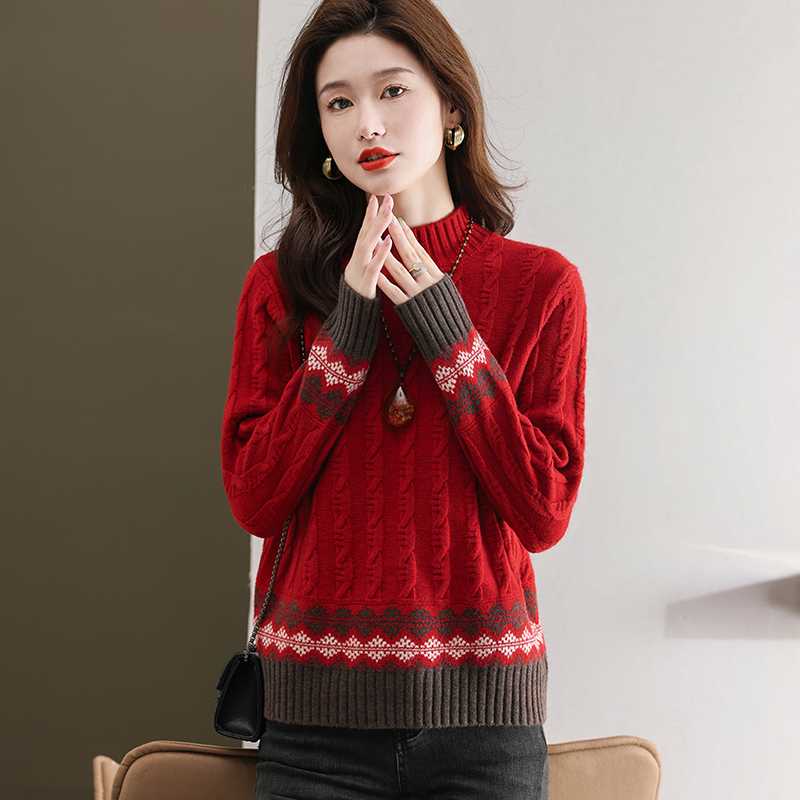 免费试穿 半高领羊绒衫女宽松拼接印花潮流加厚毛衣羊毛衫针织打底衣针织上衣服打底衫春秋内搭大码显瘦洋气打底衫女 59832红色 S¥298.00热销中 -