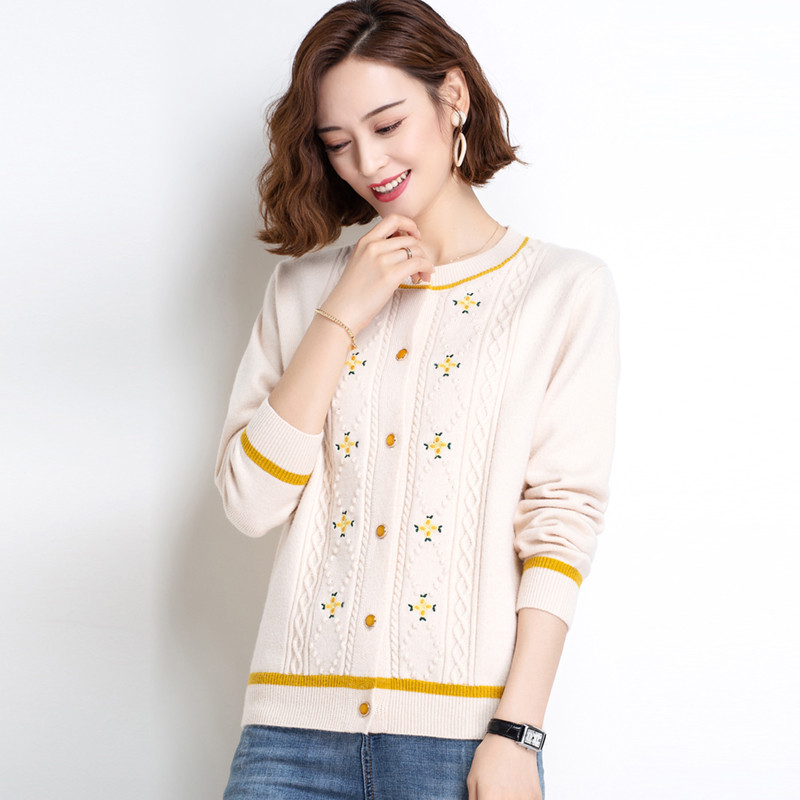 YIBUSHENG复古文艺风开衫女V领宽松短款外套针织长袖气质轻熟毛衣 咖啡色 XL建议120-130斤