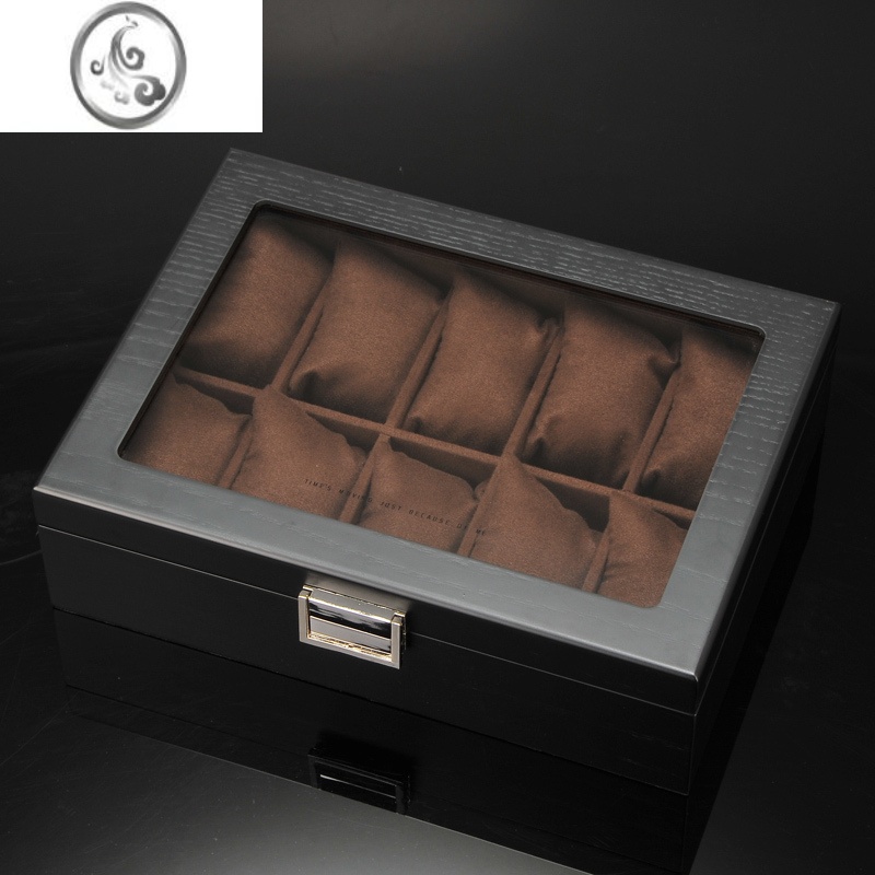 JiMi中式手表收纳盒10只装木质手串盒简约复古腕表盒收纳手表表盒 深棕色内饰带扣锁哑光黑色现货