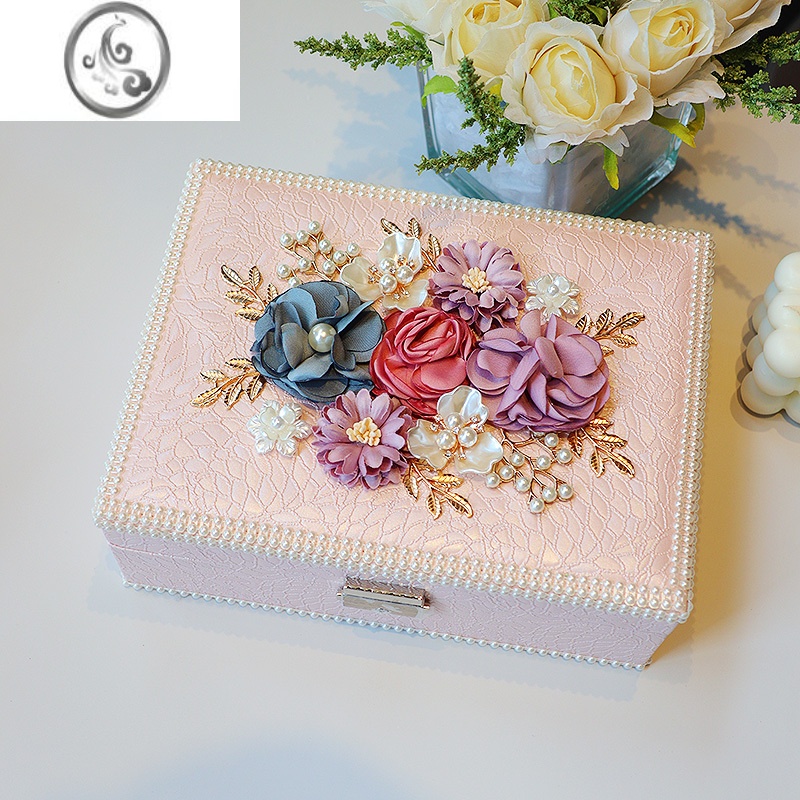 JiMi精致首饰盒 轻奢ins风花朵珠宝盒子高级手饰品收纳盒生日礼物 韩粉炫彩双层