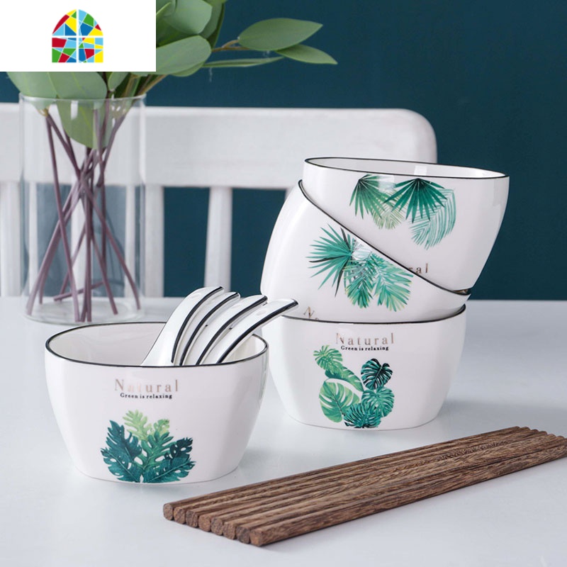 好看的盘子吃饭的碗 绿植北欧风格ins创意陶瓷餐具家用碗盘碟套装 FENGHOU 2碗2盘2勺2筷¥54.00热销中