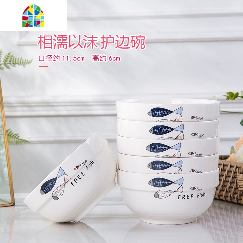 6个饭碗套装家用日式北欧风可爱个红ins创意小吃方形方碗餐具 FENGHOU 网红黑线4.5英寸欧式6只装¥34.00热销中