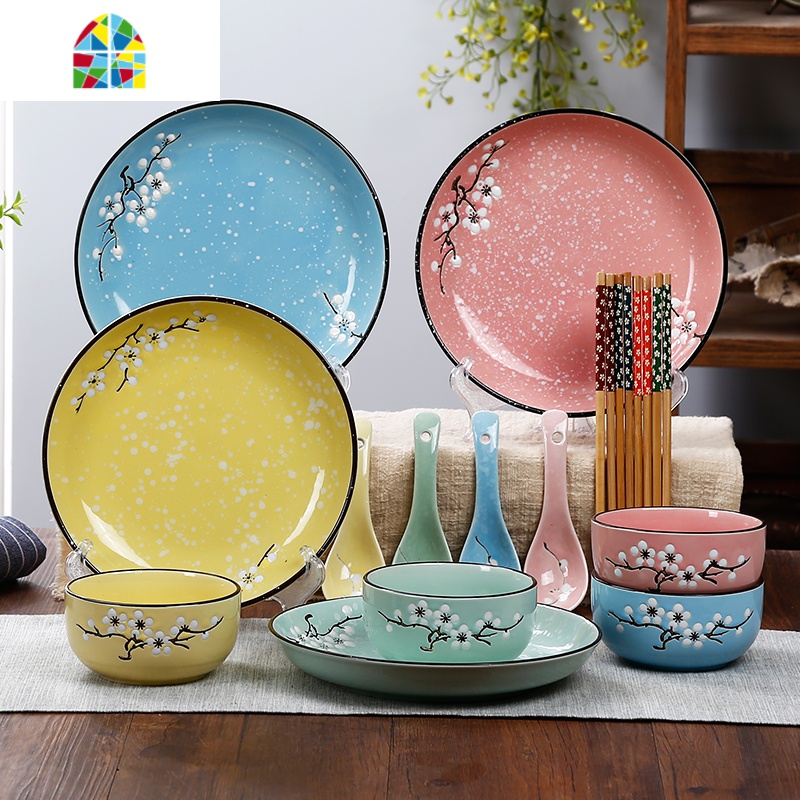 日式碗筷套装家用陶瓷碗盘碗碟套装礼品餐具礼盒装盘子碗套装 FENGHOU 梅花黄色8寸盘4个装¥54.00热销中
