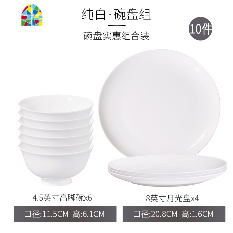 轻奢骨瓷餐具套装碗碟套装家用陶瓷器6人纯白碗具盘子碗中式 FENGHOU 纯白10碗6盘(4.5英寸高脚碗+8英_503¥184.00热销中