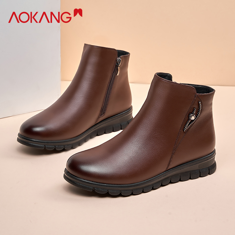 奥康棉鞋女2021冬季加绒保暖棉皮鞋休闲短靴女中年妈妈皮鞋 棕色 39¥309.00热销中