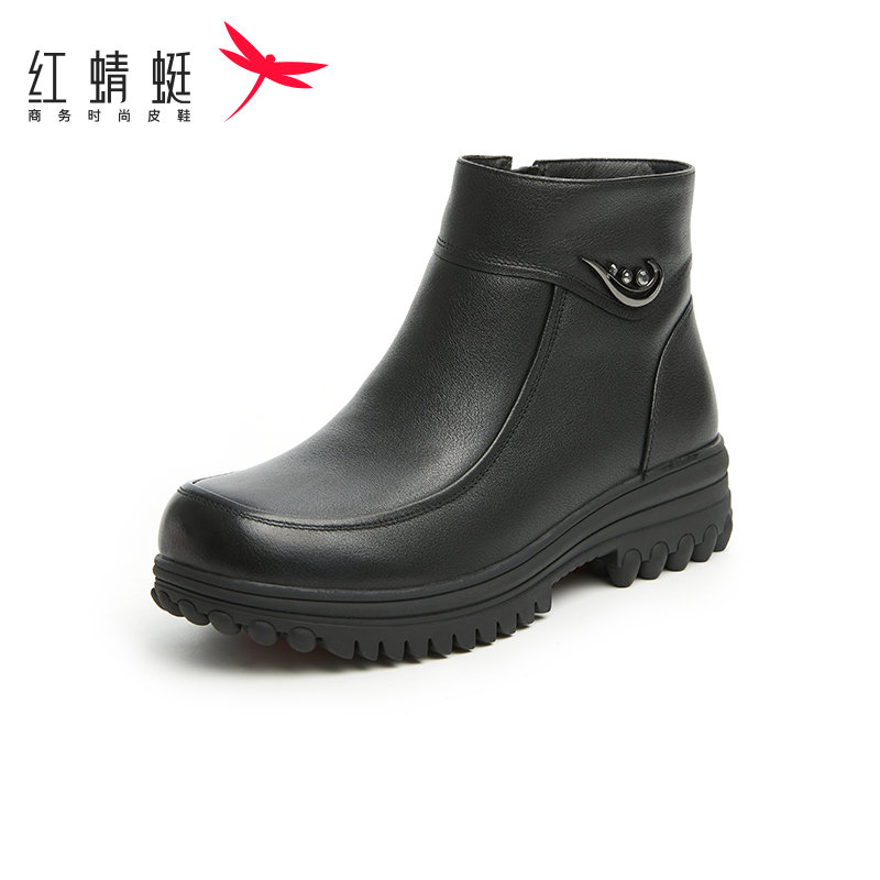 红蜻蜓短靴女2021冬季新款妈妈鞋棉鞋女中老年人真牛皮软底防滑保暖棉靴加厚绒棉皮鞋 黑色 35码¥229.00热销中