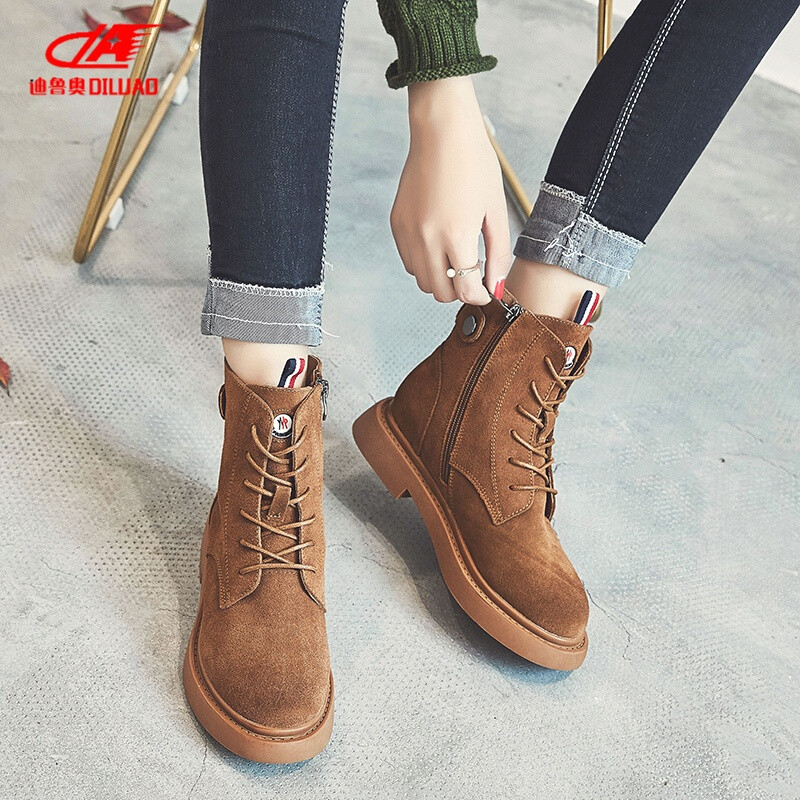 迪鲁奥DILUAO马丁靴女短靴2017秋冬英伦风平底系带女靴子厚底复古原宿女鞋子 焦糖色 35¥338.00热销中