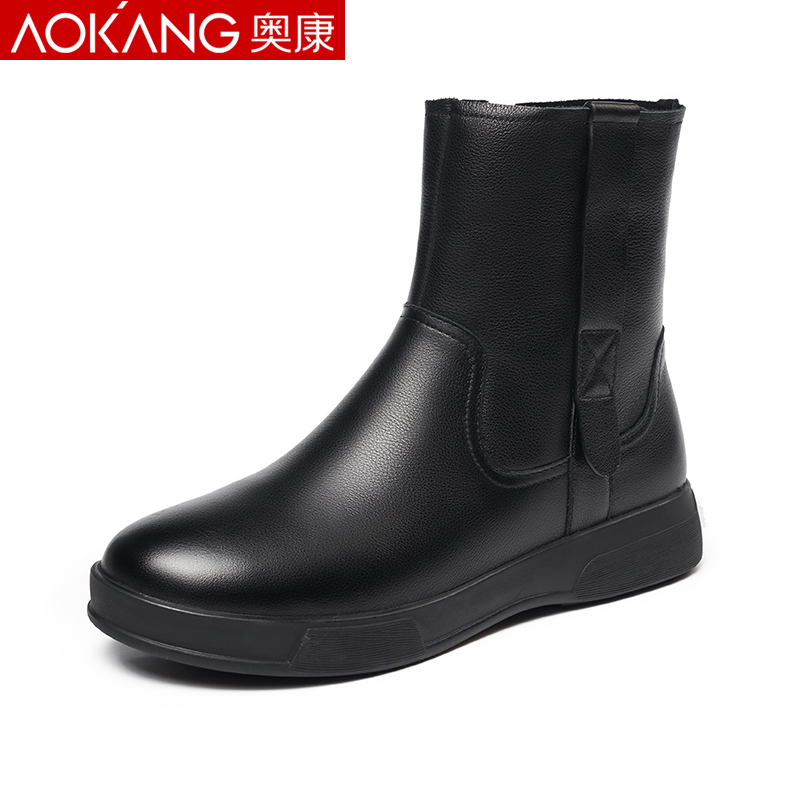 奥康女鞋冬季切尔西短靴女牛皮高帮踝靴女士加绒保暖棉鞋妈妈棉皮靴 黑色 38码¥239.00热销中