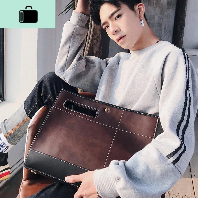新款手拿包欧美潮个性撞色手包百搭韩版潮流简约男女公文包文件袋NEW LAKE 黑色男士手拿包¥93.10热销中 -